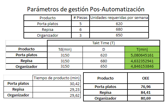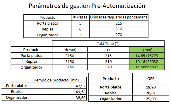 A continuación se detalla el cálculo de los parámetros de gestión de producción que se tuvieron en cuenta para el proceso de producción de cada uno de los productos de forma manual y de acuerdo con la automatización de los 3 procesos la mejora que se obtendrá.