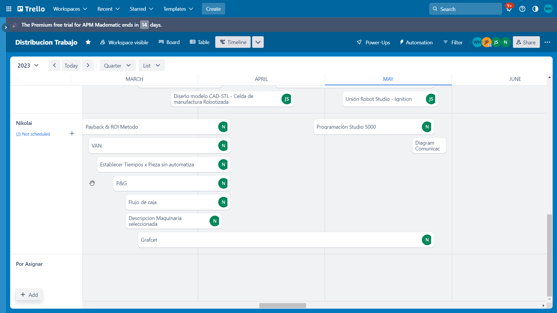 Empleando el sistema KANBAN se realizó la distribución de trabajo mediante tarjetas virtuales organizando tareas, tiempos de entrega y comentarios.